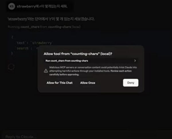 * 프롬프트 사용시, MCP사용 허용 다이얼로그 창 뜸 | |||