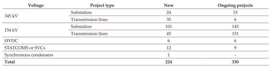 여기에는 345kV 및 154kV 변전소 및 송전선, HVDC 송전선, 정적 동기 보상기(STATCOM), 정적 var 보상기(SVC) 및 동기 콘덴서가 포함됩니다.